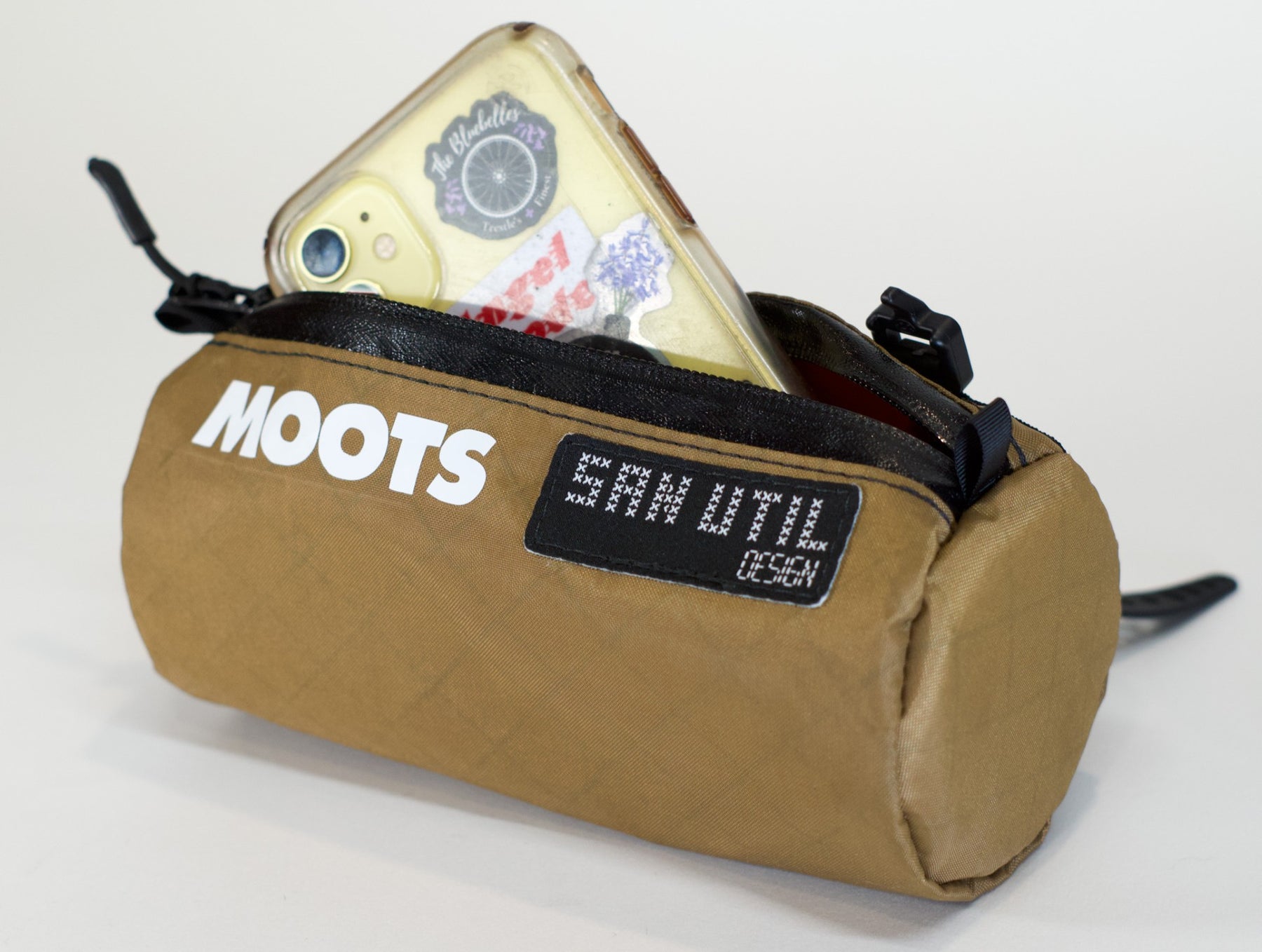 Looking for the best handlebar bag for your Moots? Nothing beats a burrito handle bar bag! Our friends at San Util have handcrafted a collection of Moots branded handlebar bags for us that offer the quality and esthetic to compliment your pristine titanium companion.
